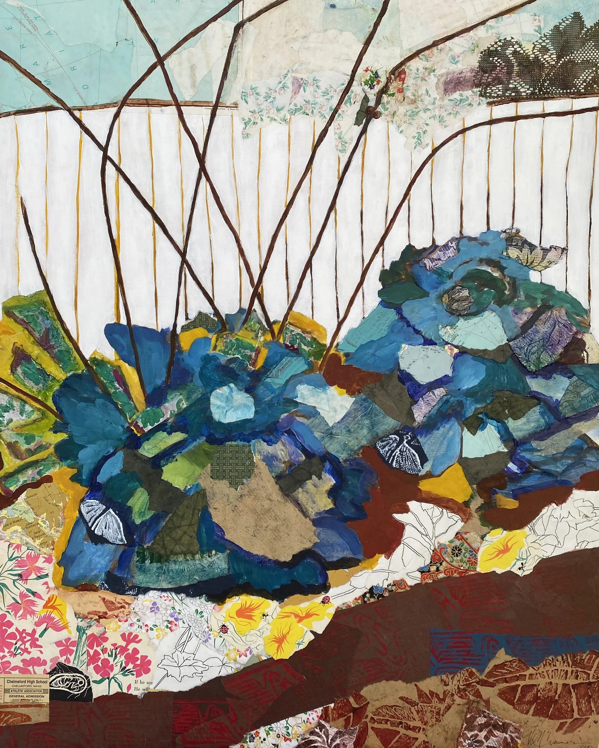 Hanging Branches, mixed media on cradled board, 48 x 36, 2024