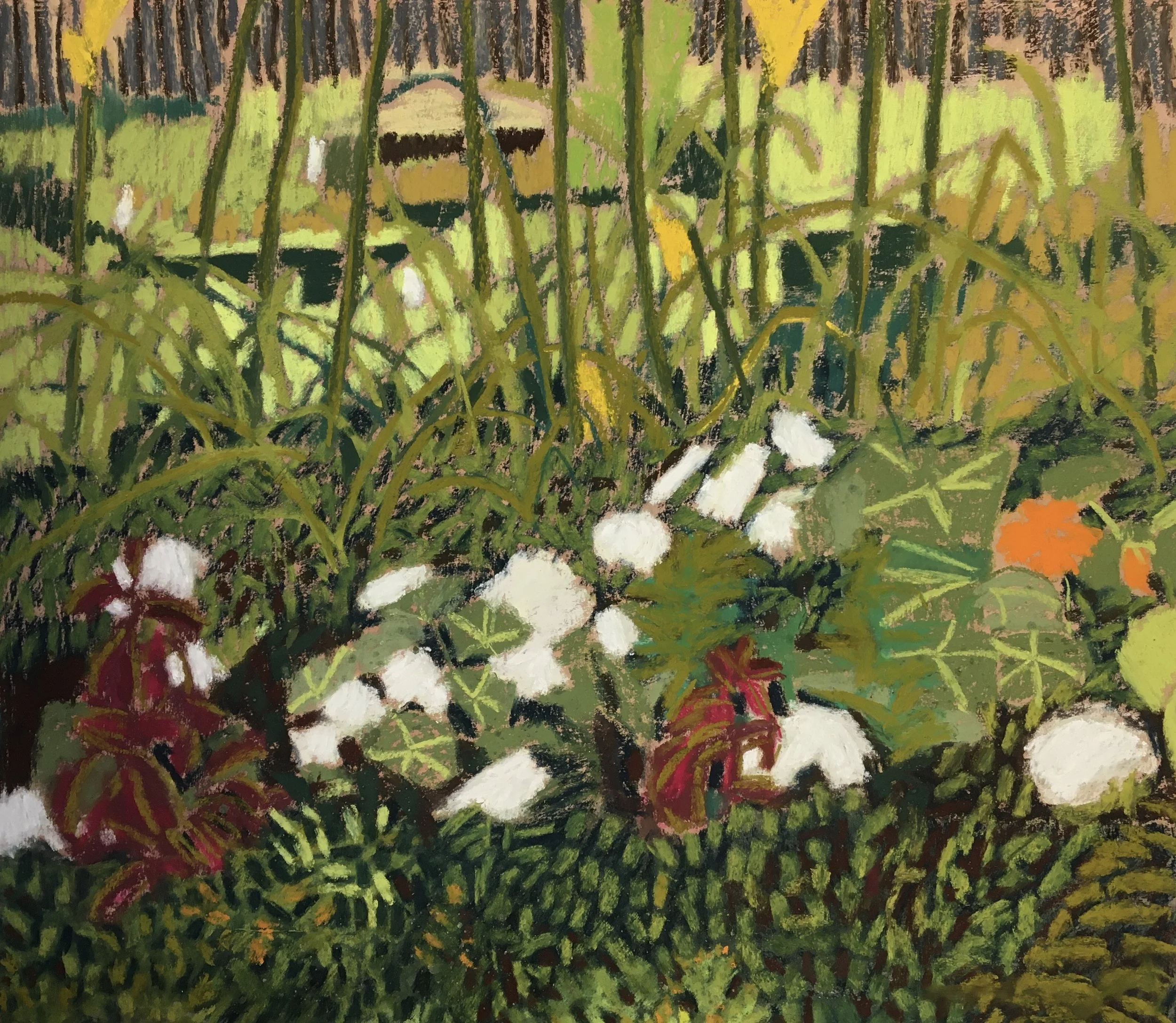 Hosta, mixed media on gessoed watercolor paper, 22 x 18, 2021